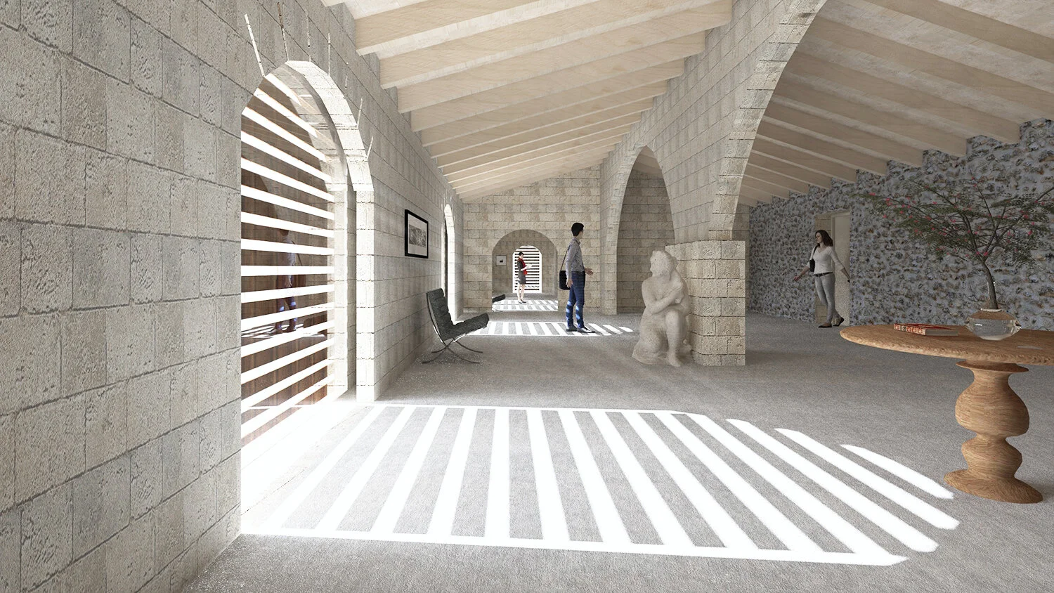 If there’s a construction element that defines Menorca, it’s the marés sandstone - omnipresent from prehistoric monuments to fortresses and churches. We emphasised retaining & restoring the existing sandstone structures, while discreetly upgrading its performance with local cork insulation to achieve high thermal efficiency and an increased thermal mass by a new internal marés stone layer. The great majority of the required construction materials ranging from natural stones, hardwood, cork insulation to re-cycled roof tiles are locally available on the island to reduce the embodied carbon energy.